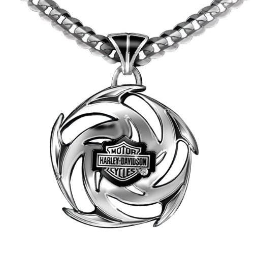 Customize your look with road-worthy Harley-Davidson style. Sculptured sterling silver pendant with black enamel accents is polished to chrome-like finish. Complete with heavy-duty box-link chain. Free Shipping in the USA. Solid .925 Sterling Silver by The Franklin Mint. No longer available from The Franklin Mint. Officially Licensed by the Harley-Davidson Motor Company. The item comes with a fr